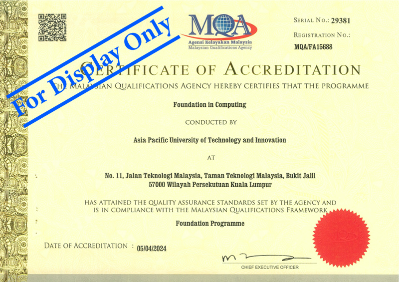 Note: The above entry requirements may differ for specific programmes based on the latest programme standards published by Malaysian Qualifications Agency (MQA). The qualification and entry requirements for the programmes will be determined based on the "Comparison List of Equivalency of International Qualifications with SPM (O-Levels equivalent) and STPM (A-Levels equivalent)" published by Malaysian Qualifications Agency (MQA).